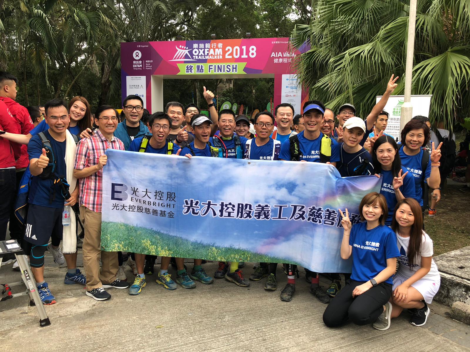2016-2018年連續(xù)三年,光大控股員工組隊參加由樂施會舉辦的「樂施毅行者」- 香港最大型的遠足籌款活動。20178年,隊伍以28小時544分鐘的佳績完成長達100公里的山路賽程,兩隊共籌得逾廿萬港元的善款,支持樂施會在本港、中國內地、非洲及亞洲其他地區(qū)推行扶貧救災和倡議工作。