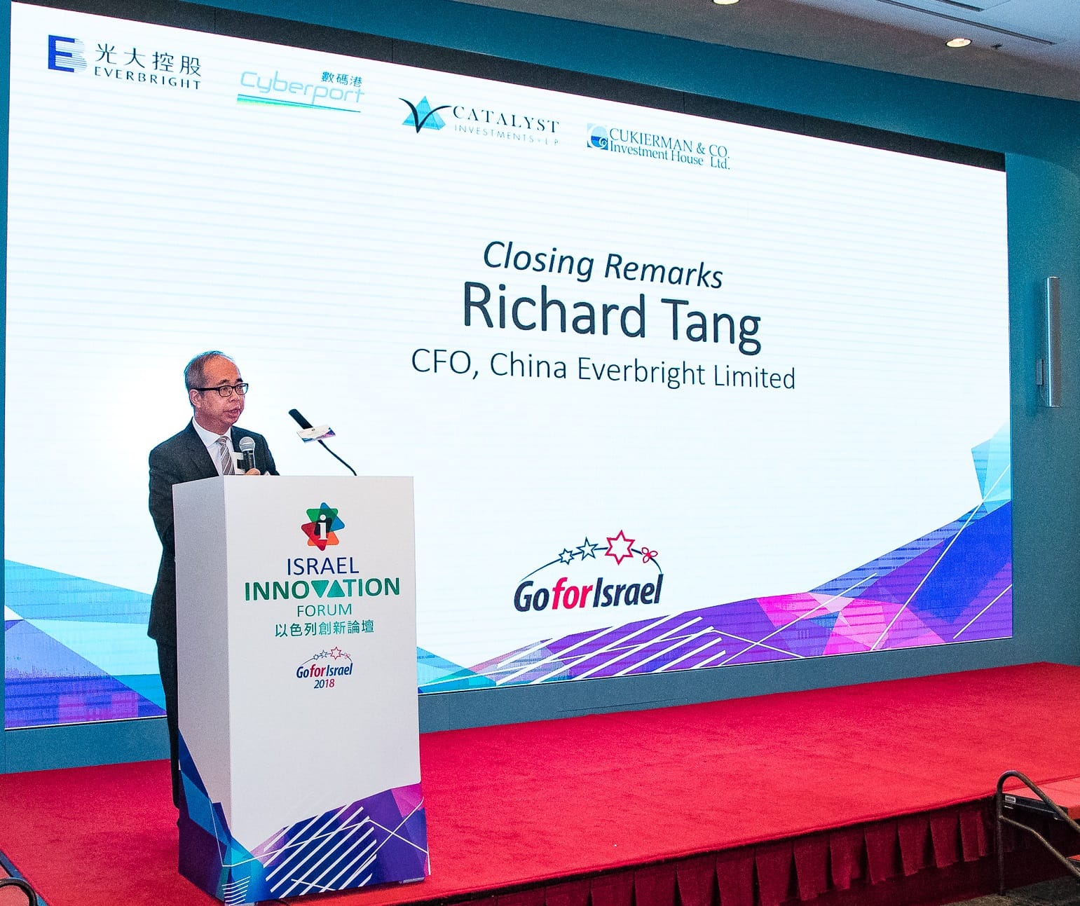 30 May, 2018 – Co-hosted by China Everbright Limited (“CEL”, HK:165), CEL-Catalyst China Israel Fund (“CCF” or “the Fund”) and Cyberport, the Israel Innovation Forum, an investment and innovation forum has successfully closed in Hong Kong. The forum drew over 200 guests from Hong Kong and mainland Chinese investment communities, government agencies, and intermediary firms. Over 80 independent meetings between tech companies and investors were organised.