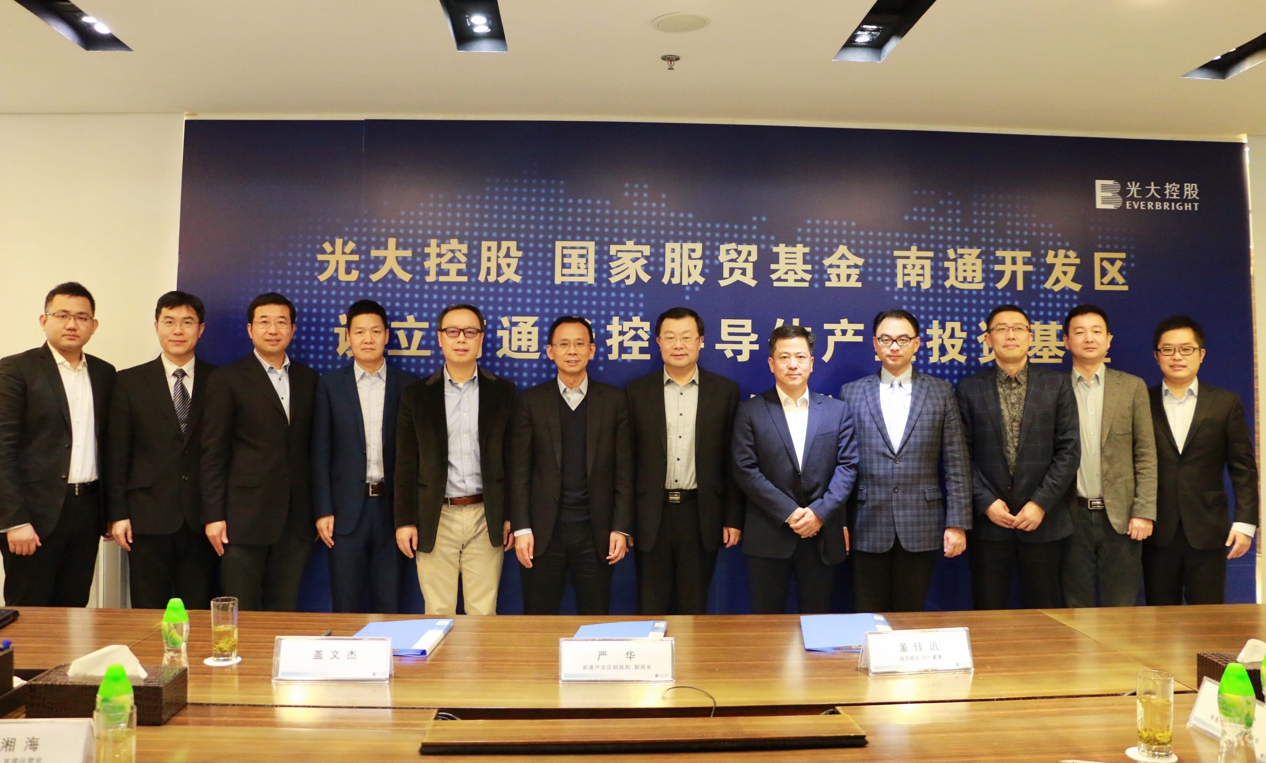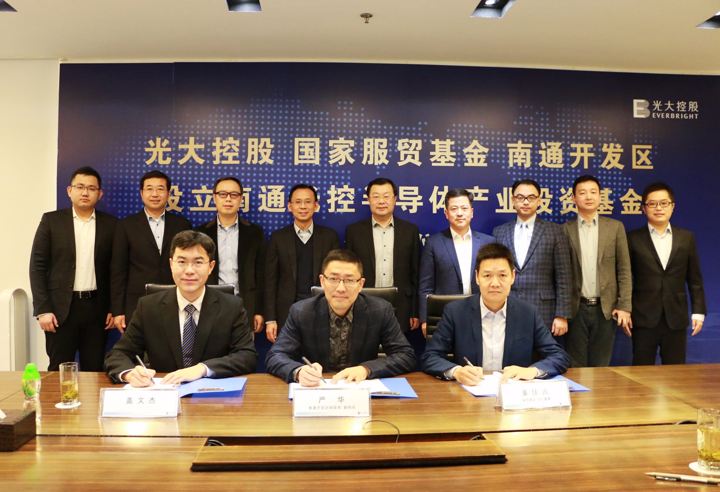 2018年12月28日-中國光大控股有限公司(「光大控股」,股份代號:165.HK)與招商局資本旗下服務貿易創(chuàng)新發(fā)展引導基金(「服貿基金」)、江蘇省南通經濟技術開發(fā)區(qū)管理委員會(「南通開發(fā)區(qū)管委會」)舉行南通光控半導體產業(yè)投資基金(「 南通半導體基金」)投資啟動儀式。會上,光大控股與服貿基金、南通開發(fā)區(qū)管委會宣佈,成功募集首期規(guī)模為5億元人民幣的半導體產業(yè)投資基金。