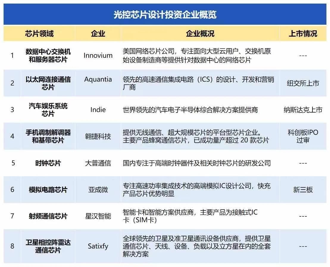 在會上發(fā)佈的白皮書顯示,在半導體領(lǐng)域光大控股的投資覆蓋了從芯片設(shè)計、晶圓製造、封裝測試到半導體裝備的整個半導體上下游產(chǎn)業(yè)。芯片設(shè)計方面,投資了十幾個細分領(lǐng)域芯片設(shè)計公司,包括數(shù)據(jù)中心交換機和服務(wù)器芯片製造商Innovium、以太網(wǎng)連接通信芯片製造商Aquantia、汽車娛樂系統(tǒng)芯片製造商Indie、時鐘芯片的製造商大普通信等。