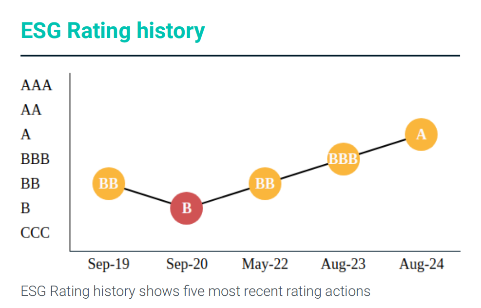 8月28日,國(guó)際權(quán)威指數(shù)機(jī)構(gòu) MSCI(“明晟”)公佈了最新2024年度ESG(環(huán)境、社會(huì)及管治)評(píng)級(jí)結(jié)果,光大控股MSCI ESG 評(píng)級(jí)躍升至 A 級(jí),自2021年以來(lái)實(shí)現(xiàn)了評(píng)級(jí)和評(píng)分的三年連續(xù)提升。