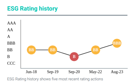 近日,國際權(quán)威指數(shù)機(jī)構(gòu)MSCI(中文簡稱“明晟”)公佈了光大控股2023年度ESG(環(huán)境、社會及管治)評級結(jié)果。憑借在ESG方面的持續(xù)良好表現(xiàn),光大控股MSCI ESG躍升至BBB級,實(shí)現(xiàn)了連續(xù)提升。公司MSCI ESG評級連續(xù)上調(diào),體現(xiàn)了資本市場對光大控股ESG管理的認(rèn)可,更是對公司長期投資價(jià)值的肯定。