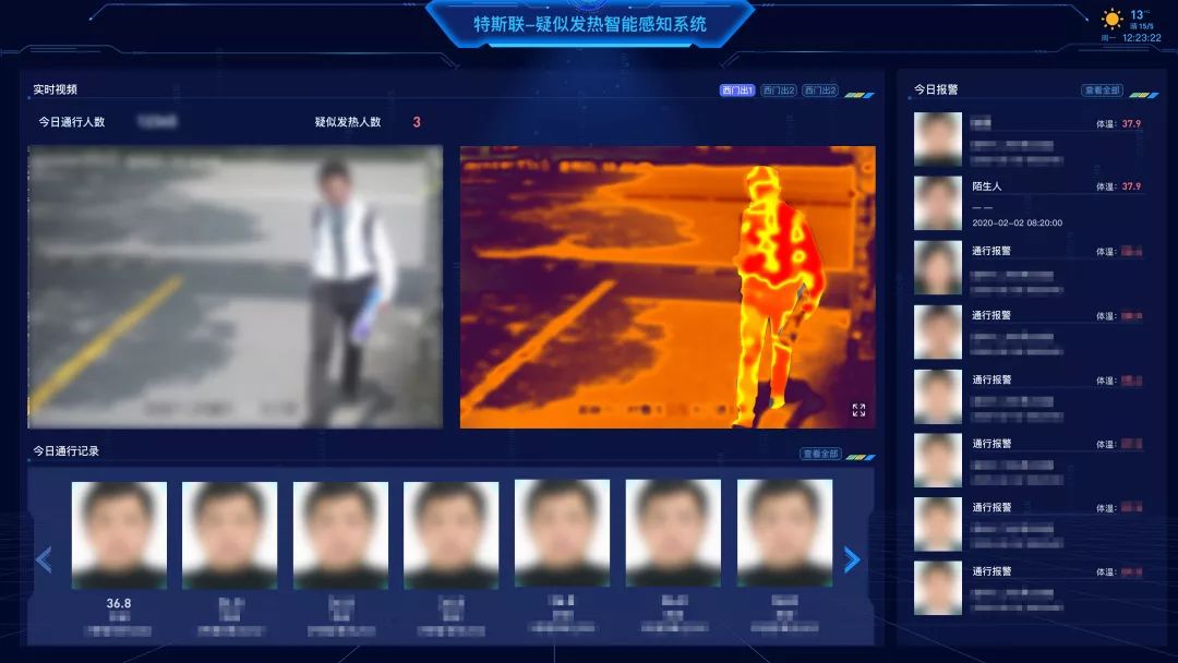 ▲特斯聯(lián)疑似發(fā)熱智慧感知系統(tǒng),對出入口疑似發(fā)熱人員第一時間預警,同步推送社區(qū)工作人員進行核查