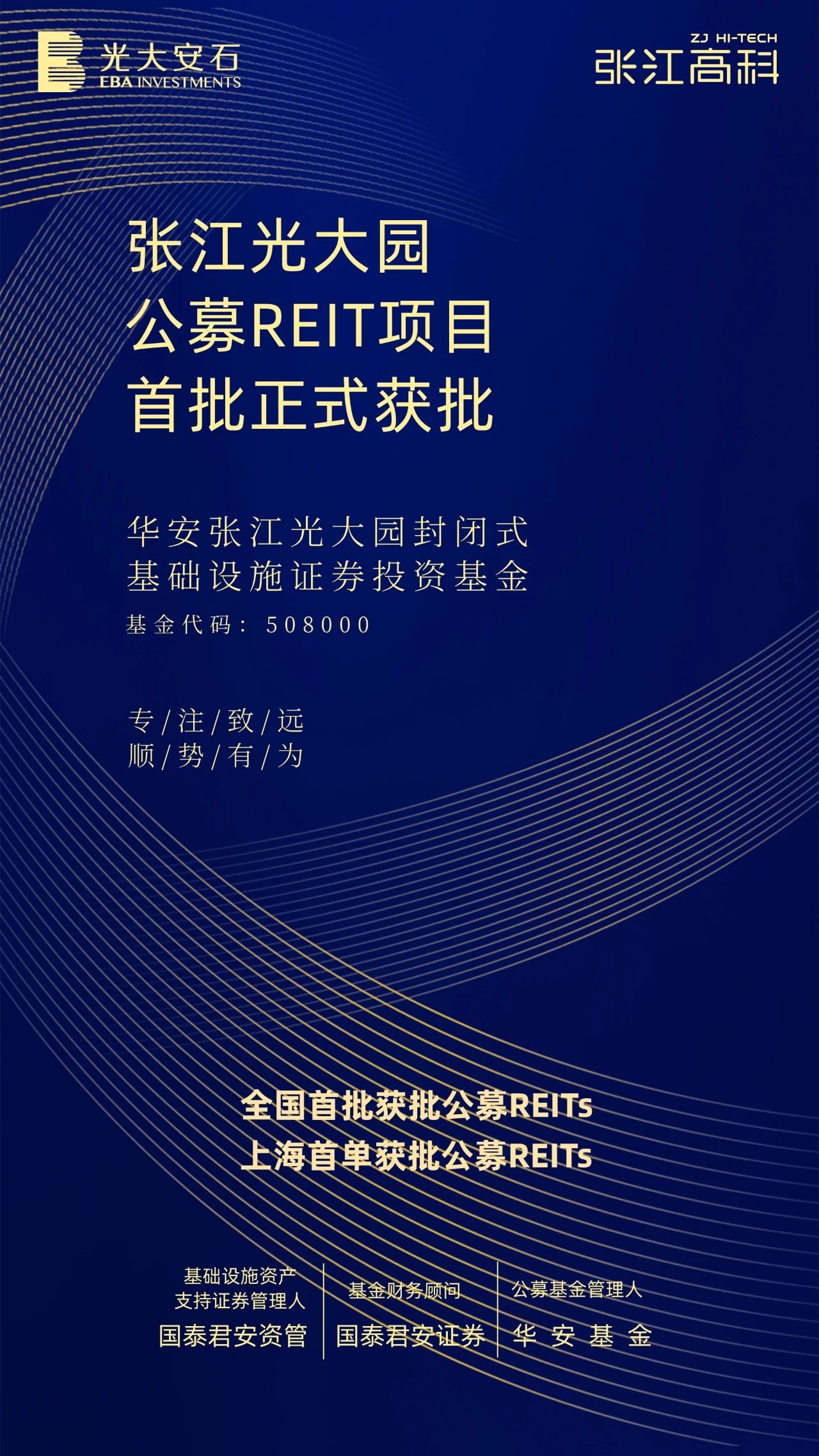 2021年5月17日,光大控股旗下光大安石與張江高科共同推進(jìn)的華安張江光大園封閉式基礎(chǔ)設(shè)施證券投資基金(基金代碼:508000)正式取得中國(guó)證券監(jiān)督管理委員會(huì)註冊(cè)批復(fù)。光大安石在管產(chǎn)業(yè)園區(qū)——“上海張江光大園”作為華安張江光大園封閉式基礎(chǔ)設(shè)施證券投資基金的底層資產(chǎn),在眾多優(yōu)質(zhì)申報(bào)項(xiàng)目中脫穎而出,成為我國(guó)內(nèi)陸首批、上海市首個(gè)獲批的基礎(chǔ)設(shè)施公募REITs項(xiàng)目。本項(xiàng)目由國(guó)泰君安資管作為資產(chǎn)支持證券管理人,華安基金擔(dān)任公募基金管理人,國(guó)泰君安證券擔(dān)任財(cái)務(wù)顧問(wèn)。